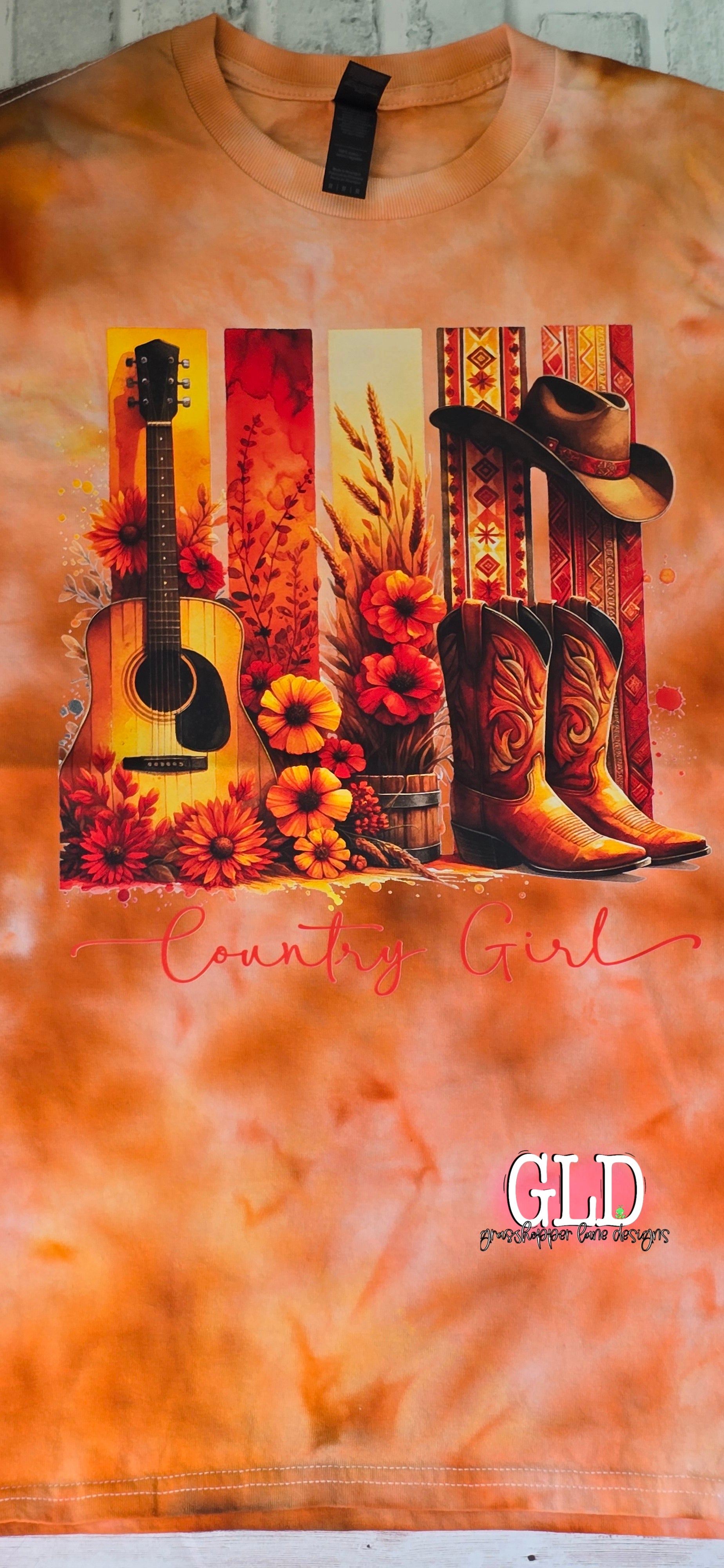 Beautiful Fall shirt. Country girl design on a comfortable t-shirt in your choice of ice dye and cream comfort color tee.